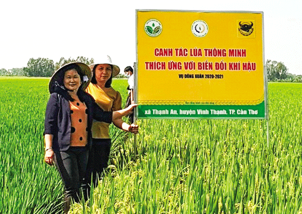 Ðể canh tác lúa đạt hiệu quả trong điều kiện sản xuất ngày càng có nhiều bất lợi do ảnh hưởng của biến đổi khí hậu (BÐKH), Trung tâm Khuyến nông Quốc gia (KNQG) phối hợp Công ty CP Phân bón Bình Ðiền hỗ trợ nông dân tại vùng ÐBSCL thực hiện mô hình canh tác lúa thông minh thích ứng BÐKH. Mô hình triển khai thực hiện trong vụ đông xuân 2020-2021 và hè thu 2021 đã khẳng định mang lại nhiều hiệu quả thiết thực cả về kinh tế và môi trường. Từ thành công của mô hình, nhiều địa phương mong muốn đẩy mạnh nhân rộng phát triển trong thời gian tới.