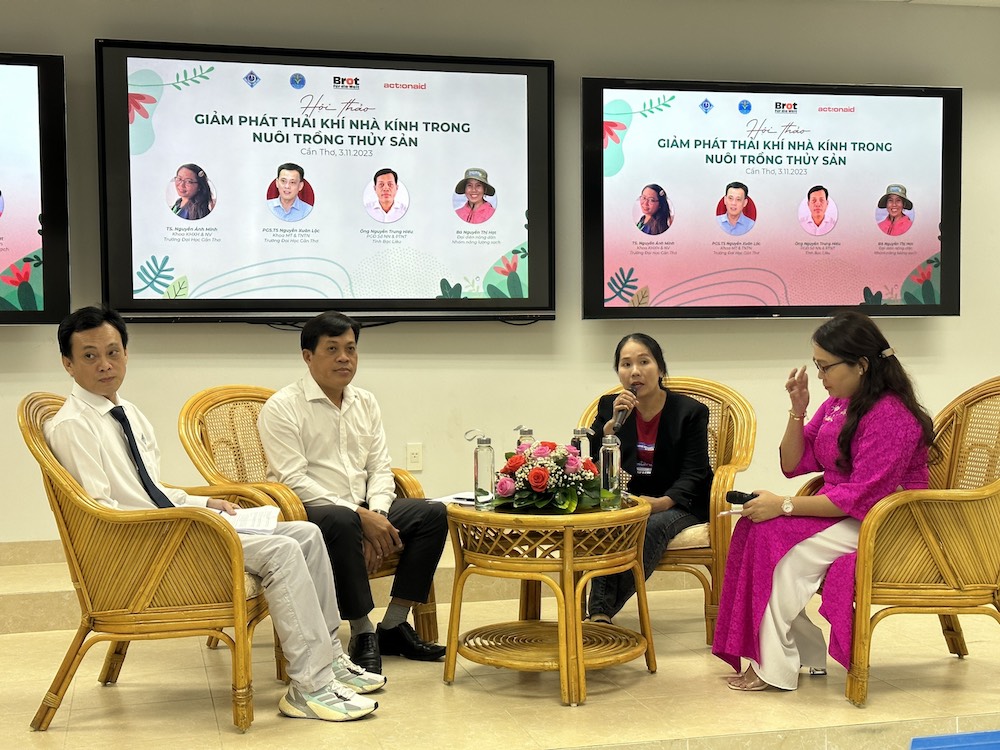 Chia sẻ về giải pháp giảm phát thải khí nhà kính trong nuôi trồng thuỷ sản, ông Nguyễn Trung Hiếu, Phó Giám đốc Sở Nông nghiệp và Phát triển nông thôn tỉnh Bạc Liêu nhấn mạnh cần: Ứng dụng năng lượng tái tạo; Giảm thiểu sử dụng năng lượng hóa thạch; Thiết lập quy trình nuôi trồng không phát thải khí nhà kính có chứng nhận.