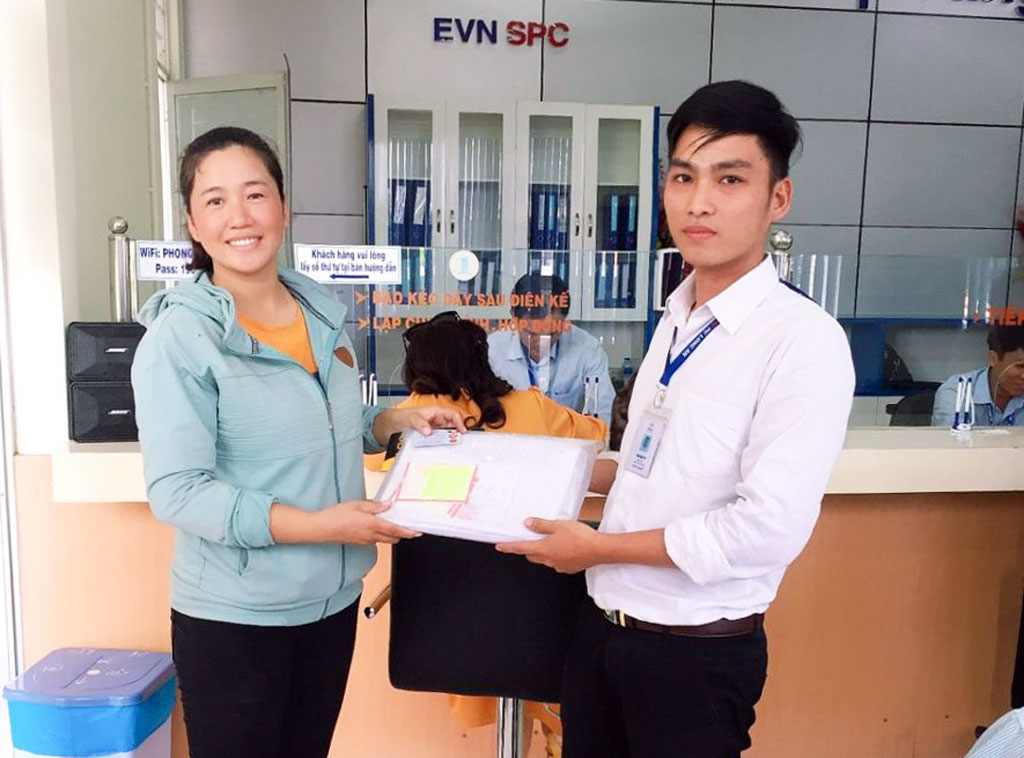 Đến ngày 08/11, khách hàng đến Điện lực Đức Hòa nhận lại. Sau khi nhận lại tài sản đánh rơi, chị Hiền cùng người thân vô cùng xúc động và gửi lời cảm ơn sâu sắc đến nhân viên Ngô Ngọc Tín cùng toàn thể cán bộ, nhân viên Điện lực Đức Hòa.