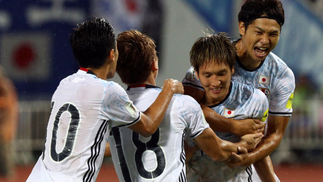 Niềm vui của các cầu thủ Nhật Bản sau khi ghi bàn vào lưới Thái Lan. Ảnh: Reuters