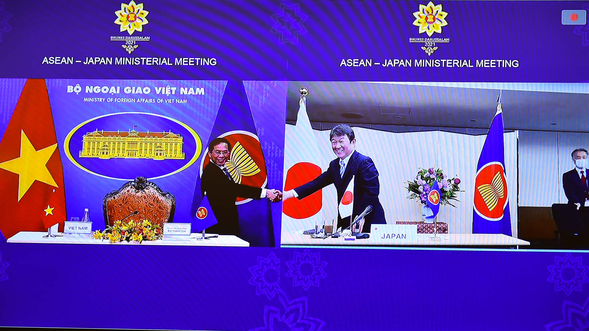 | Bộ trưởng Ngoại giao Bùi Thanh Sơn, trong vai trò điều phối quan hệ ASEAN - Nhật Bản cùng Bộ trưởng Ngoại giao Nhật Bản Motegi Toshimitsu đồng chủ trì Hội nghị trực tuyến Bộ trưởng Ngoại giao ASEAN - Nhật Bản |