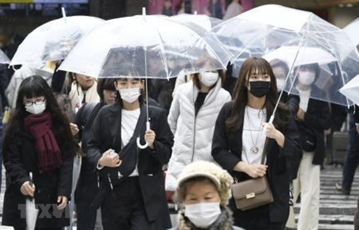 Người dân đeo khẩu trang phòng tránh COVID-19 tại Osaka, Nhật Bản. (Ảnh: Kyodo/TTXVN)