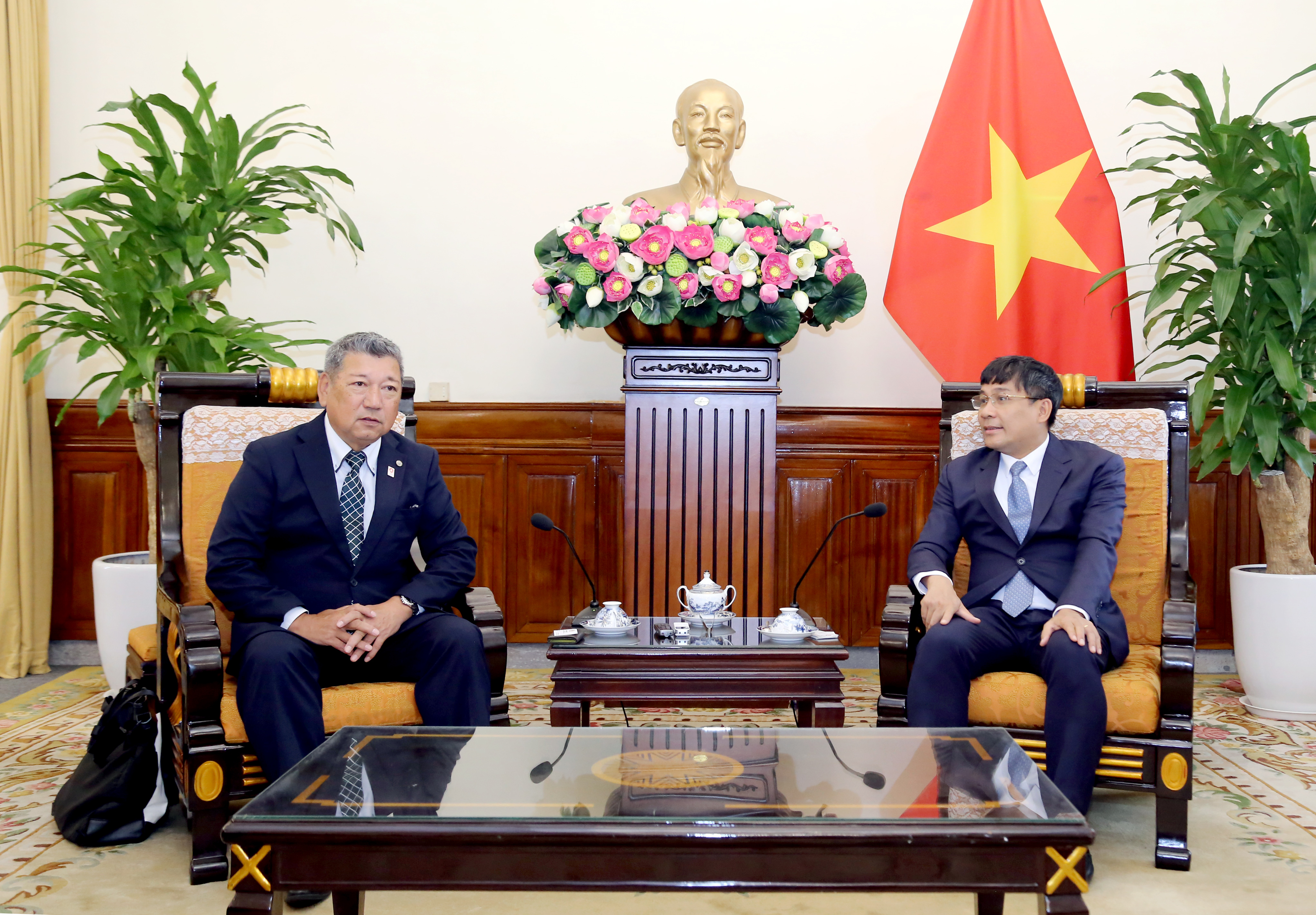 Ngày 08/11/2023, tại trụ sở Bộ Ngoại giao, Thứ trưởng Thường trực Bộ Ngoại giao Nguyễn Minh Vũ đã tiếp đoàn Liên minh nghị sĩ hữu nghị Nhật - Việt tỉnh Osaka, Nhật Bản, do Chủ tịch Wada Kenji dẫn đầu đang thăm Việt Nam từ ngày 07 - 11/11/2023.