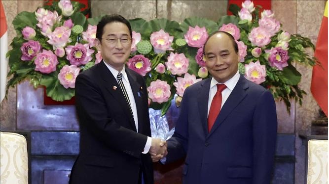 Thủ tướng Nhật Bản Ki-si-đa Phư-mi-ô bày tỏ xúc động và cảm ơn sự đón tiếp trọng thị, thân tình mà Nhà nước và Nhân dân Việt Nam dành cho đoàn; khẳng định Nhật Bản luôn coi trọng Việt Nam trong chính sách khu vực. Tán thành các đề xuất hợp tác mà Chủ tịch nước Nguyễn Xuân Phúc đề cập, Thủ tướng Ki-shi-đa Phư-mi-ô mong muốn tăng cường hợp tác chặt chẽ với Việt Nam, cùng đưa mối quan hệ Đối tác chiến lược sâu rộng Việt Nam - Nhật Bản phát triển lên tầm cao mới, thực chất, hiệu quả, hướng tới kỷ niệm 50 năm thiết lập quan hệ ngoại giao Việt Nam - Nhật Bản vào năm 2023. Thủ tướng Ki-shi-đa mời Chủ tịch nước Nguyễn Xuân Phúc thăm lại Nhật Bản vào năm 2023 nhân dịp kỷ niệm 50 năm thiết lập quan hệ ngoại giao hai nước.