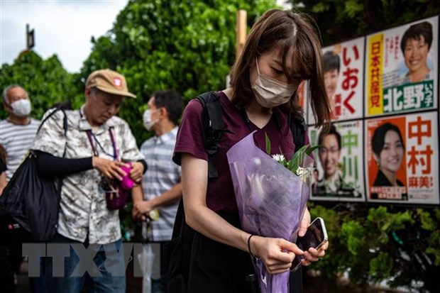 Người dân đặt hoa tưởng nhớ cựu Thủ tướng Abe Shinzo tại Nara, Nhật Bản, ngày 9/7. (Ảnh: AFP/TTXVN)