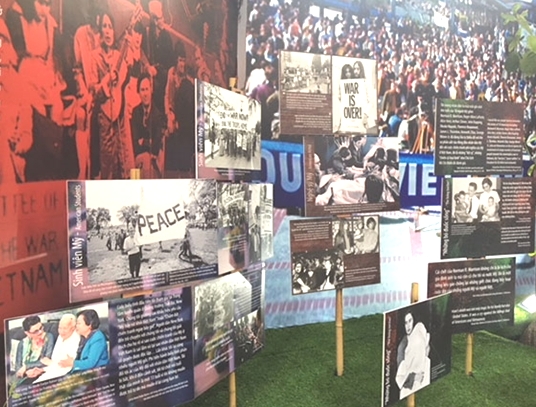 Triển lãm cũng tái hiện sinh động, chân thực về làn sóng phản chiến, đặc biệt nội dung “Lửa Việt Nam trong lòng nước Mỹ” đã khắc họa sinh động về tình yêu hòa bình luôn âm ỉ cháy trong lòng nhân dân tiến bộ Mỹ. Sự ủng hộ liên tục, mạnh mẽ của nhân dân tiến bộ Mỹ được báo chí gọi là “Cuộc chiến tranh ở trong lòng nước Mỹ”. Hàng ngàn thanh niên đốt giấy gọi nhập ngũ, hàng trăm sĩ quan Mỹ bị bắt vì phản đối chiến tranh... Các khẩu hiệu “Mỹ hãy rời khỏi Việt Nam”, “Hãy dừng lại cuộc chiến tranh vô nghĩa”, “Con trai tôi đã chết một cách vô ích, đừng đi đánh nhau nữa, thà ngồi tù còn hơn” đã làm rung động những trái tim yêu hòa bình ở nước Mỹ ngày ấy, trở thành phong trào phản chiến chưa từng có trong lịch sử nước Mỹ.