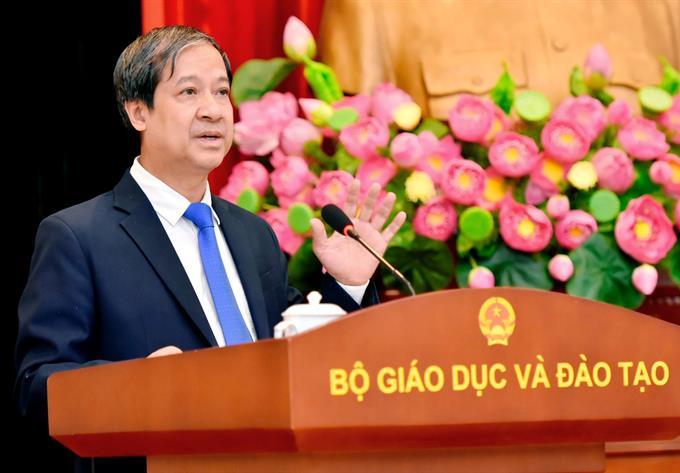| Bộ trưởng Bộ GDĐT Nguyễn Kim Sơn phát biểu tại hội nghị. Ảnh: TH. |