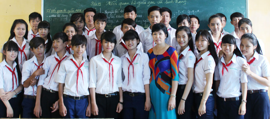 Cô Tống Thị Tuyết Nhung bên những học sinh thân yêu