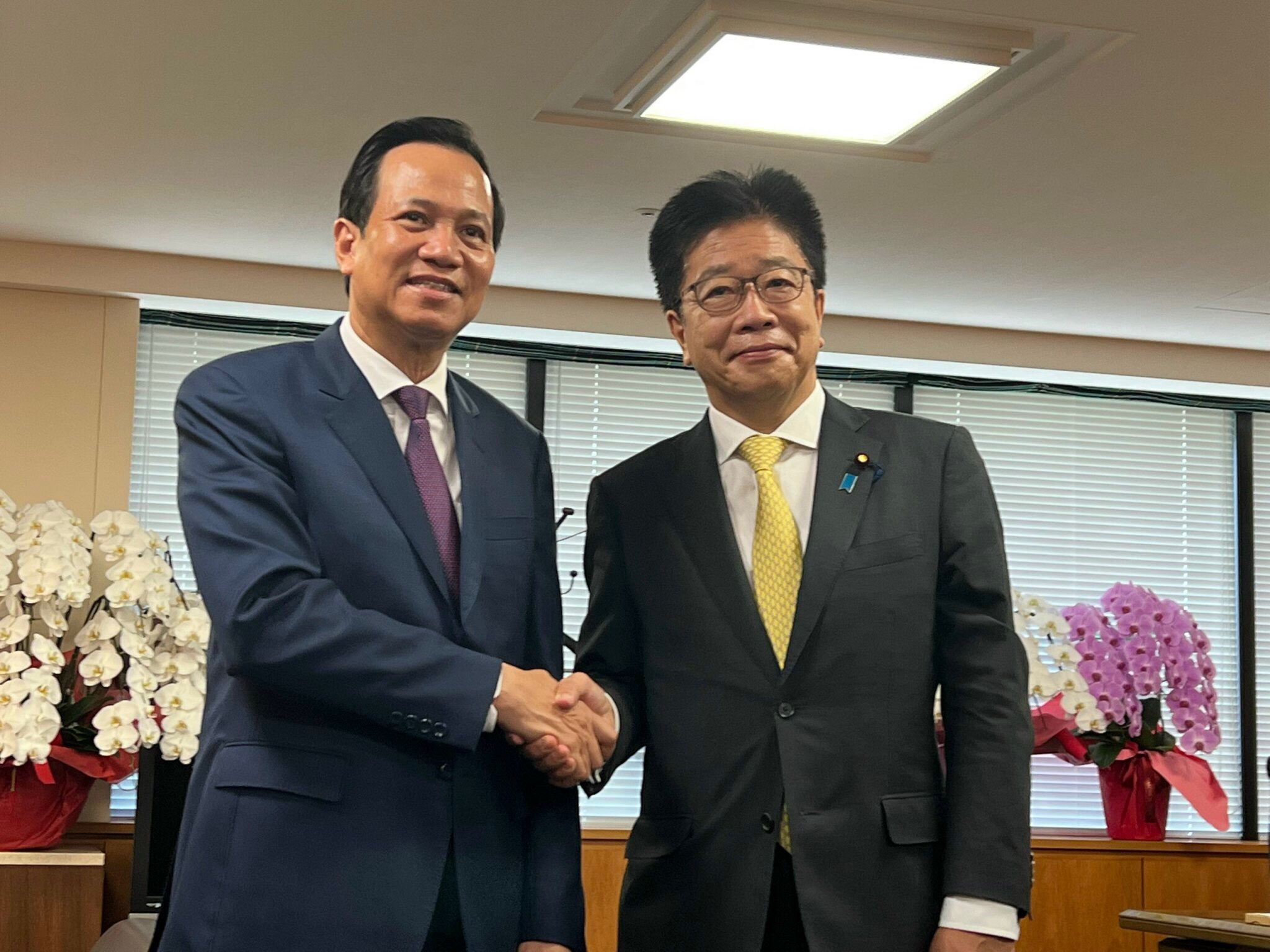 | Bộ trưởng Bộ LĐTBXH Việt Nam Đào Ngọc Dung và Bộ trưởng Bộ Y tế, Lao động và Phúc lợi xã hội Nhật Bản Kato Katsunobu (Ảnh: TT) |