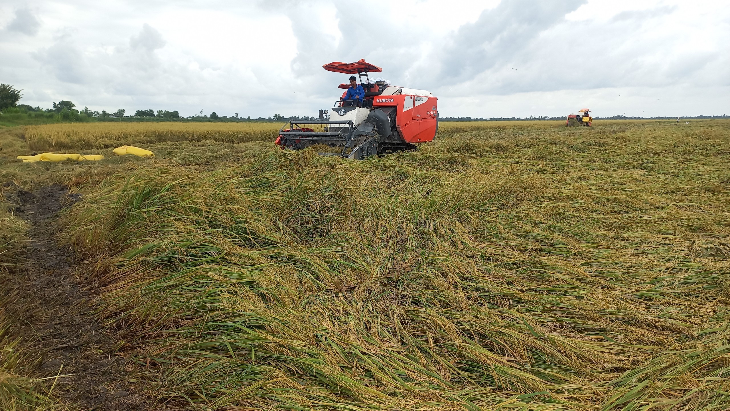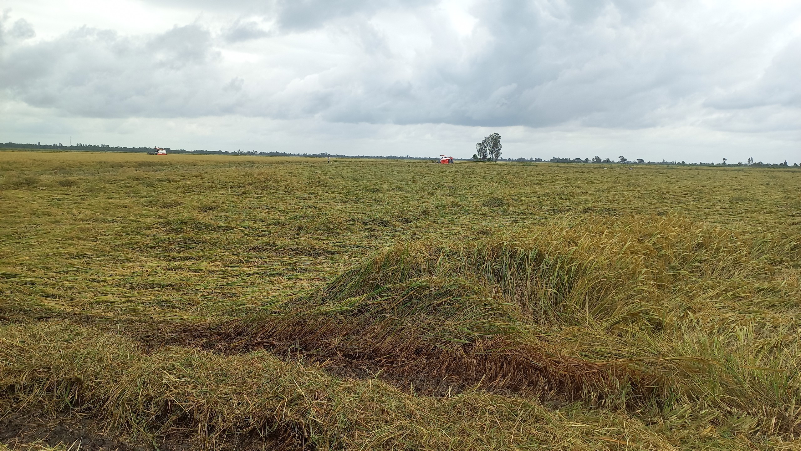 Số diện tích đổ ngã, nông dân đang gặp phải khó khăn, giá thu hoạch lúa bằng máy cắt liên hợp tăng cao. Nếu lúa đứng thì giá máy cắt liên hợp khoảng 1,2 triệu đồng/ha (lúa đổ ngã tăng tùy theo tỷ lệ, giá tăng gấp đôi nếu diện tích bị ngã hoàn toàn).