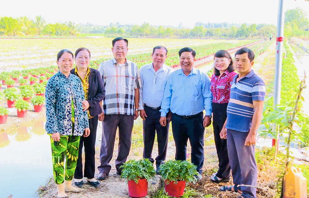 Cán bộ Hội LHPN xã Thới Lai cùng lãnh đạo xã tham quan tìm hiểu hiệu quả mô hình trồng hoa kiểng của hội viên phụ nữ. Ảnh do Hội LHPN xã cung cấp