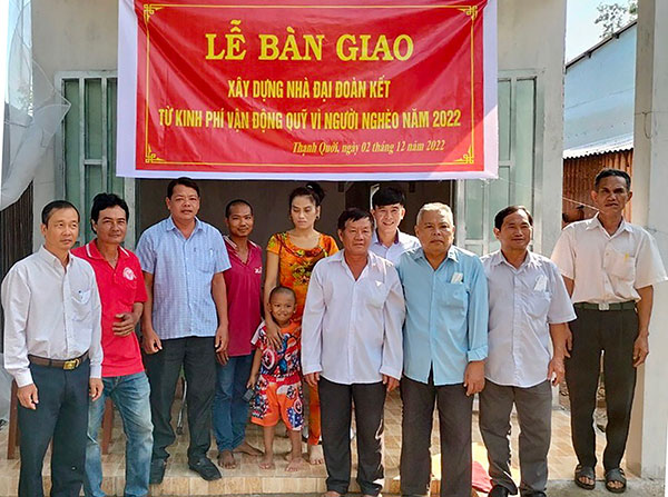Lễ bàn giao nhà Ðại đoàn kết cho hộ nghèo ở xã Thạnh Quới. Ảnh: Mặt trận huyện Vĩnh Thạnh cung cấp.