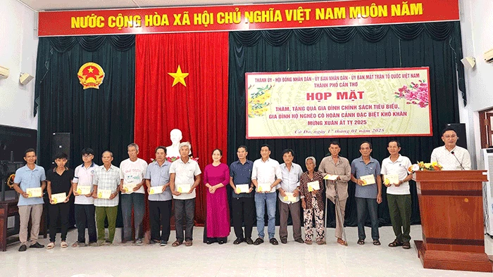 ► Ðồng chí Nguyễn Thị Xuân Diện, Phó Chánh Văn phòng UBND TP Cần Thơ, đại diện đoàn công tác của Thành ủy, HÐND, UBND, Ủy ban MTTQVN thành phố vừa tặng quà gia đình chính sách tiêu biểu, hộ nghèo có hoàn cảnh đặc biệt khó khăn trên địa bàn huyện Cờ Ðỏ.