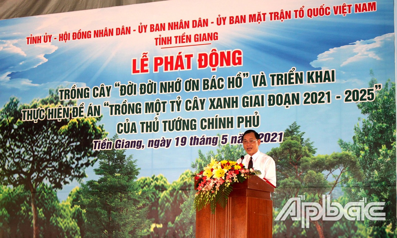 | Đồng chí Nguyễn Văn Vĩnh - Phó Bí thư Tỉnh ủy, Chủ tịch UBND tỉnh Tiền Giang phát động tại buổi lễ. (Ảnh: Lê Minh) |