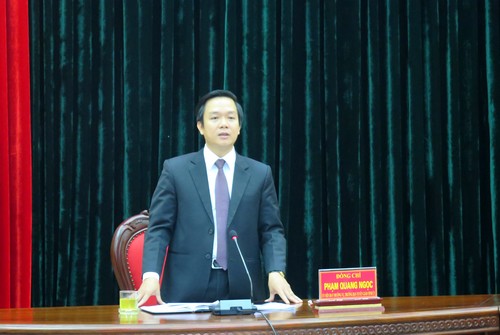Đồng chí Phạm Quang Ngọc, Trưởng Ban Tuyên giáo Tỉnh ủy chủ trì buổi họp báo. (Ảnh: HH)