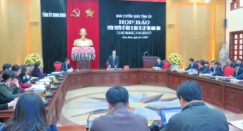 Đồng chí Phạm Quang Ngọc cho biết, Lễ kỷ niệm được tổ chức vào tối Chủ nhật, ngày 26/3/2017 được truyền hình trực tiếp trên sóng Đài PTTH Ninh Bình. Kỷ niệm 25 năm tái lập tỉnh Ninh Bình là sự kiện chính trị trọng đại, có ý nghĩa rất lớn, đánh dấu chặng đường 25 năm xây dựng, đổi mới và phát triển với nhiều thành tựu đạt được tương đối toàn diện trên tất cả các lĩnh vực. Đây là cơ sở vững chắc, là niềm tin, động lực lớn để Đảng bộ, quân và dân trong tỉnh tiếp tục vững bước trong chặng đường mới, thực hiện thắng lợi những mục tiêu, nhiệm vụ chính trị đề ra; quyết tâm xây dựng tỉnh Ninh Bình ngày càng giàu đẹp, văn minh.