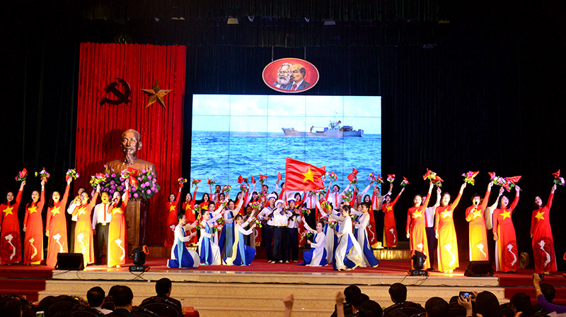 | Tiết mục Hợp xướng "Tổ quốc trong tim" do công đoàn viên Ban Tuyên giáo Trung ương biểu diễn. Ảnh: Phạm Cường |