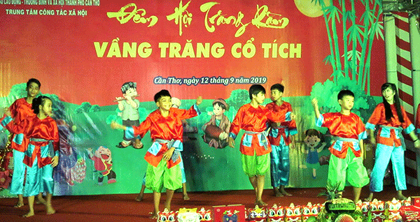 Tiết mục văn nghệ sôi động do trẻ Trung tâm CTXH thành phố biểu diễn tại Đêm hội trăng rằm với chủ đề “Vầng trăng cổ tích”.