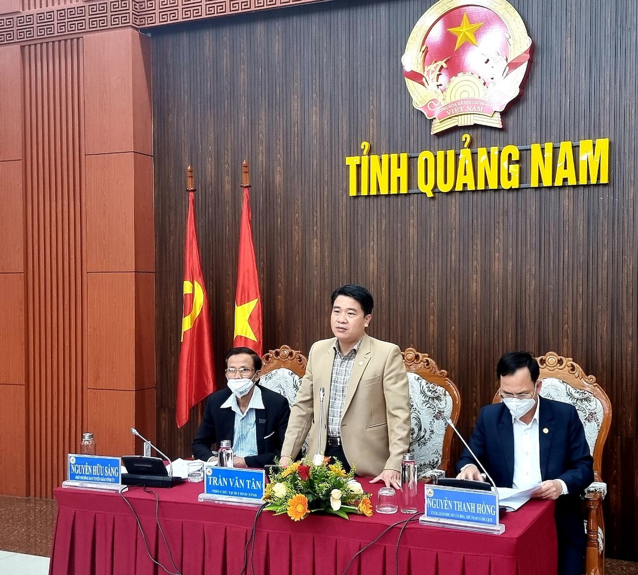| Đồng chí Trần Văn Tân, Uỷ viên Ban Thường vụ, Phó Chủ tịch UBND tỉnh Quảng Nam phát biểu tại buổi họp báo. |