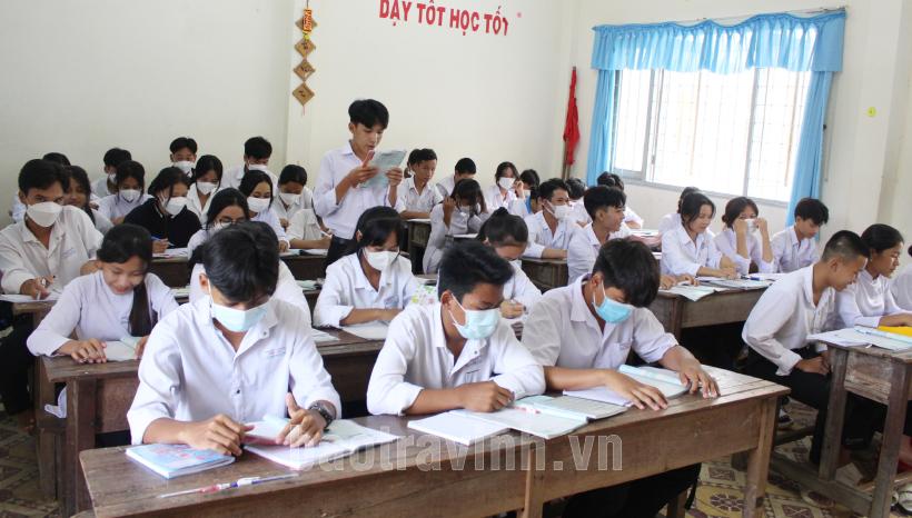 HS lớp 10A6, Trường THPT Trà Cú trong giờ học.