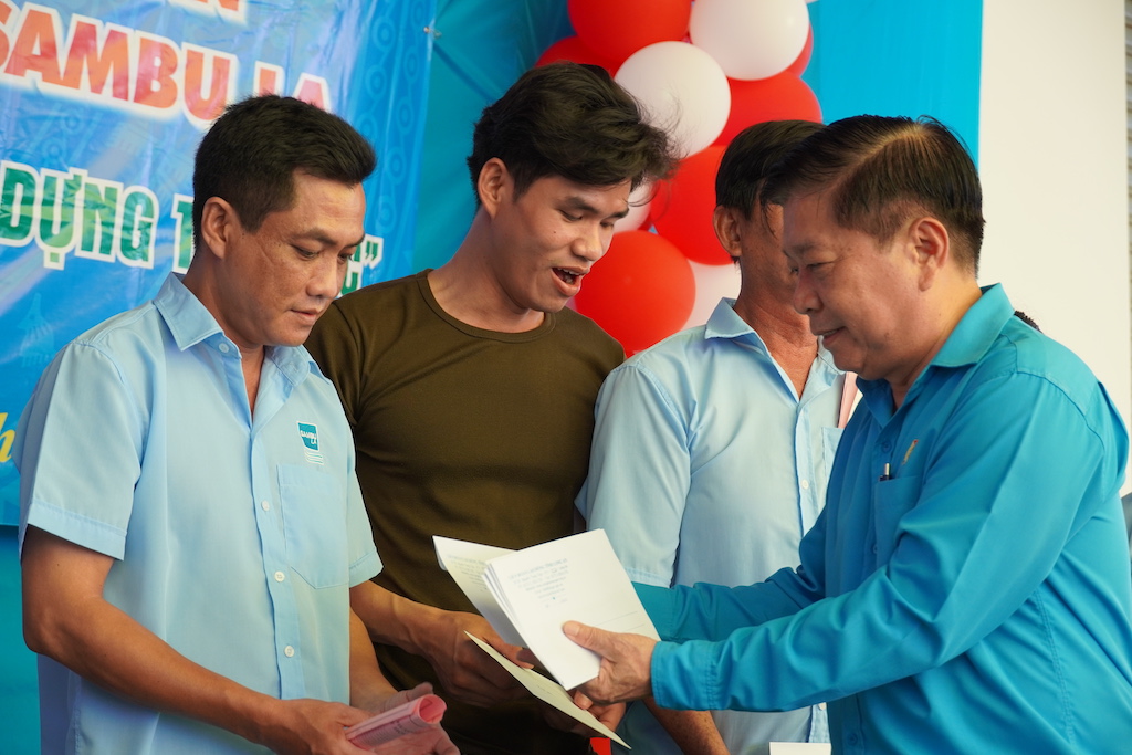 Ngoài ra, 1 công nhân được trao tặng Mái ấm Công đoàn trị giá 50 triệu đồng. Dịp này, Công đoàn cơ sở Cty TNHH Sambu Long An phát động đóng góp Quỹ Tấm lòng vàng và được CNLĐ hưởng ứng tích cực.