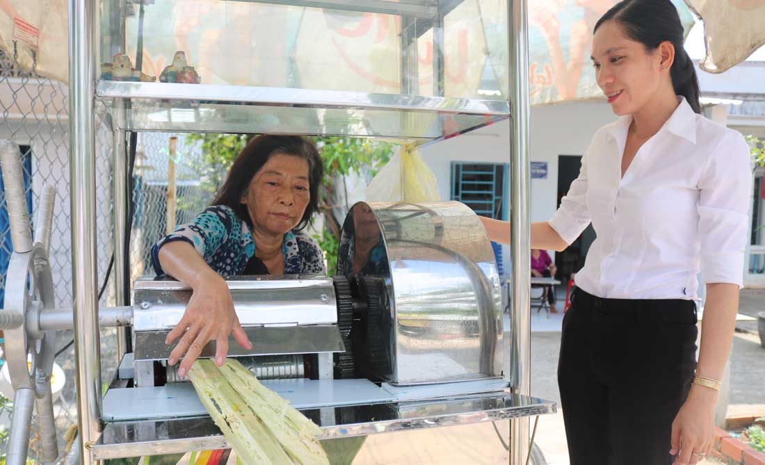 Gia đình chị Nguyễn Thị Tuyết Trinh (xã Tân Kim, huyện Cần Giuộc) được hỗ trợ xe nước mía nhằm cải thiện cuộc sống