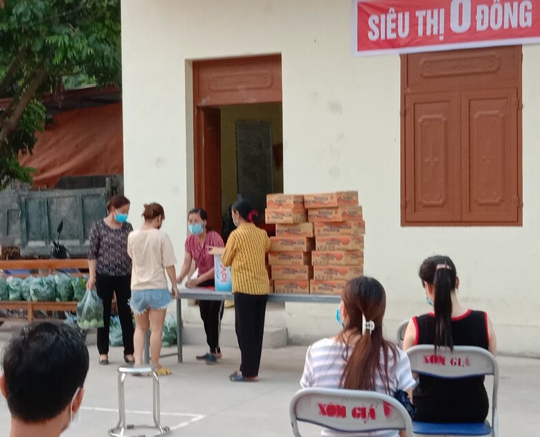 | "Siêu thị 0 đồng" triển khai tại khu nhà trọ địa bàn huyện Yên Dũng. |
