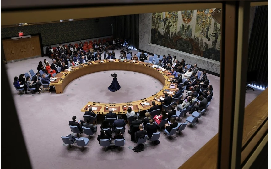 | Một cuộc họp của Hội đồng Bảo an Liên hợp quốc về tình hình ở Dải Gaza hồi tháng 3. Ảnh: Reuters |