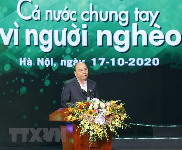 Thủ tướng Nguyễn Xuân Phúc phát biểu tại chương trình 'Cả nước chung tay vì người nghèo' năm 2020. (Ảnh: Doãn Tấn/TTXVN)