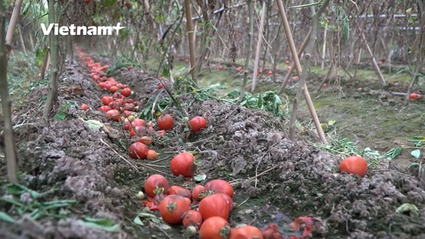 Một cánh đồng cà chua chín rụng không thu hoạch tại Mê Linh, Hà Nội (Ảnh: Lâm Phan/Vietnam+)