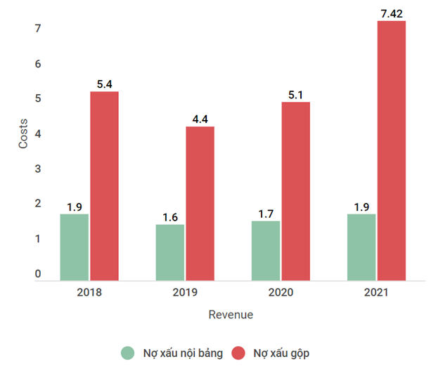 Tuy nhiên, dịch COVID-19 bùng phát đã ảnh hưởng tiêu cực đến chất lượng tín dụng của hệ thống các tổ chức tín dụng. Nợ xấu và tỷ lệ nợ xấu nội bảng tăng liên tục từ năm 2020 đến nay, đến cuối tháng 11/2021 tăng cao ở mức trên 2%.