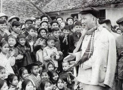 | Bác Hồ nói chuyện với các cháu thiếu nhi. (Ảnh tư liệu) |