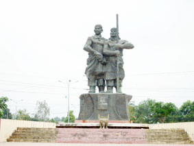 | Tượng đài Đốc binh Lê Cẩn và Nguyễn Giao. Ảnh: ĐĂNG HUỲNH |