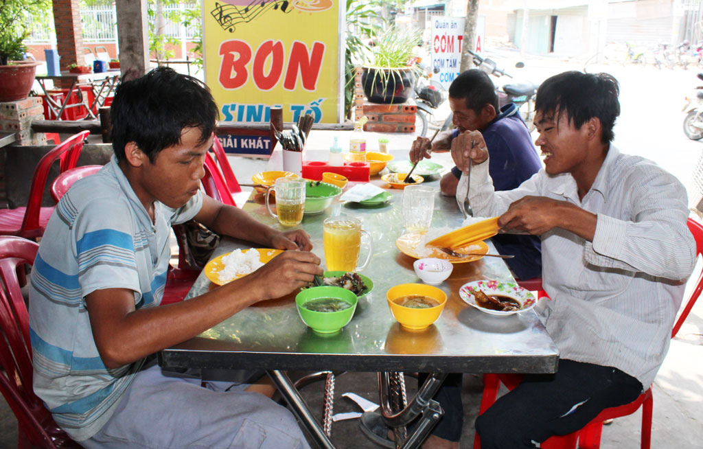 Làm nghề thợ hồ đã mấy chục năm, ông Nguyễn Thanh Minh, ngụ khu phố 4, phường 2, TP.Tân An rất quen với cảnh ăn cơm tiệm. Ông Minh nói: “Gia đình có 3 thành viên nhưng ai cũng đi làm. Do đó, buổi trưa mạnh ai nấy ăn. Dân lao động như chúng tôi ăn sao cũng được, chủ yếu là no, nhanh và hợp túi tiền”.