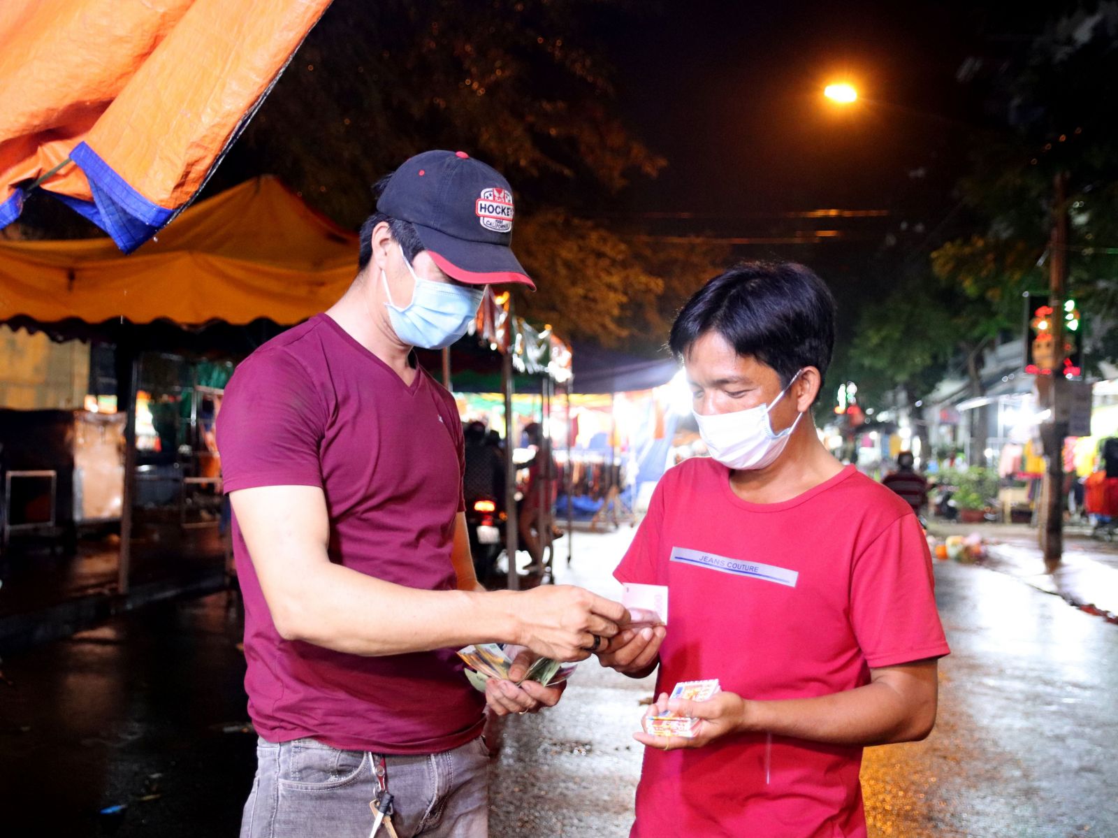Cầm xấp vé số khá dày trên tay, anh Khoa ra sức mời khách. Anh Khoa trải lòng: “Nhìn cảnh nhà nhà, người người quây quần bên nhau đón xuân tôi cũng buồn nhưng vì cuộc sống nên phải ráng đi làm để kiếm tiền trang trải cuộc sống. Chưa năm nào tôi buôn bán ế ẩm như năm nay. Chiều nay, trời mưa nên tình hình buôn bán còn tệ hơn hôm qua. Đêm qua, bán được 200 tờ nhưng từ chiều đến giờ bán được chưa đến 50 tờ. Sáng mai, tôi sẽ tranh thủ đi bán cho hết.”