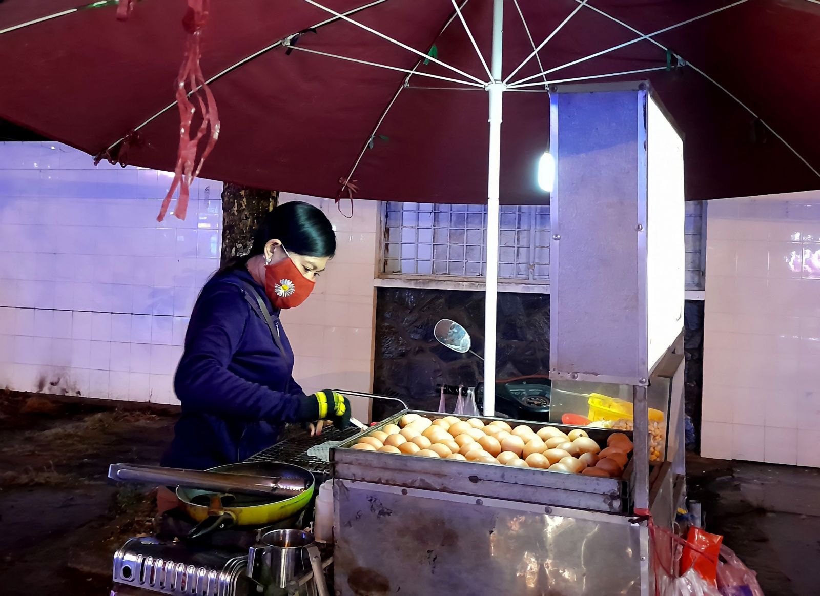 Hơn 10 năm gắn bó với mảnh đất Long An, chị Đặng Thị Chung (44 tuổi), làm nghề bán hàng rong đã quá quen thuộc với hình ảnh của người lao động tất bật mưu sinh vào đêm 30 tết. Chị Chung chia sẻ: “Tôi quê Hà Nội, vào miền Nam lập nghiệp đã mười mấy năm. Cuộc sống khó khăn nên cũng chẳng thể về quê đón tết cùng gia đình. Năm nào, tết không về quê là tôi đều đi làm. Mọi năm, thời khắc trước giao thừa người dân đi chơi, đi xem bắn pháo hoa rất đông nên bán đắt hàng lắm. Năm nay, tình hình buôn bán thê thảm.”