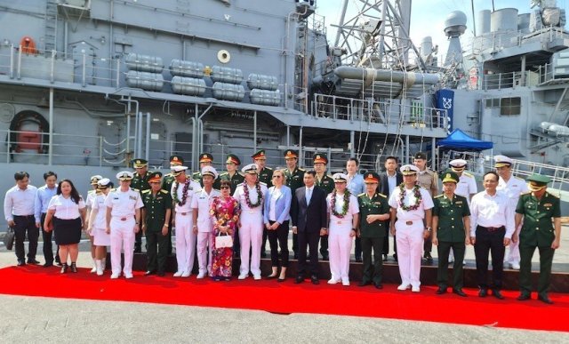 Lễ đón nhóm tàu sân bay USS Ronald Reagan được tổ chức chiều 25/6 tại cảng Tiên Sa- thành phố Đà Nẵng. Tham dự lễ đón có ông Hồ Kỳ Minh- Phó Chủ tịch UBND thành phố Đà Nẵng, đại diện Bộ Quốc phòng, Sở Ngoại vụ thành phố Đà Nẵng, cùng một số cơ quan chức năng của Việt Nam.