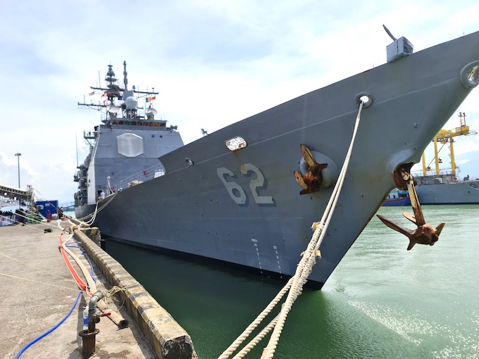 | Tàu hộ tống USS Robert Smalls – (CG 62) tại cảng Tiên Sa. |
