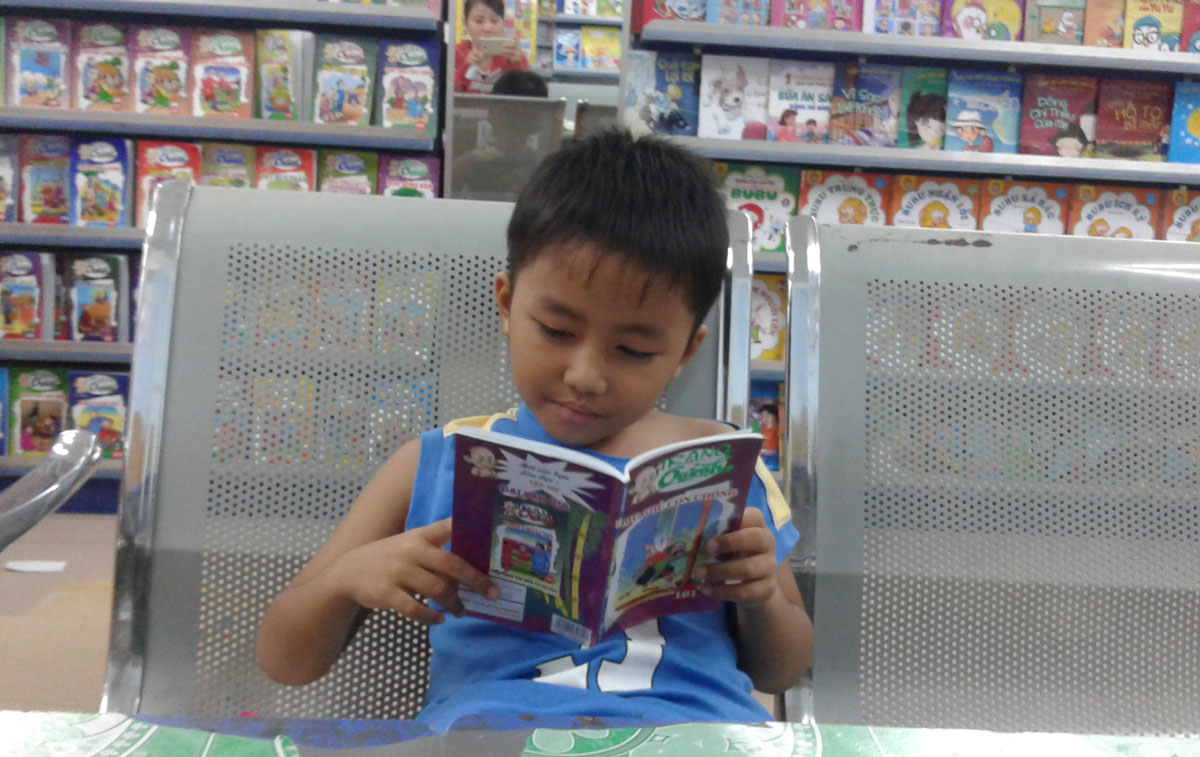 Những ngày hè, các em đến nhà sách đọc sách