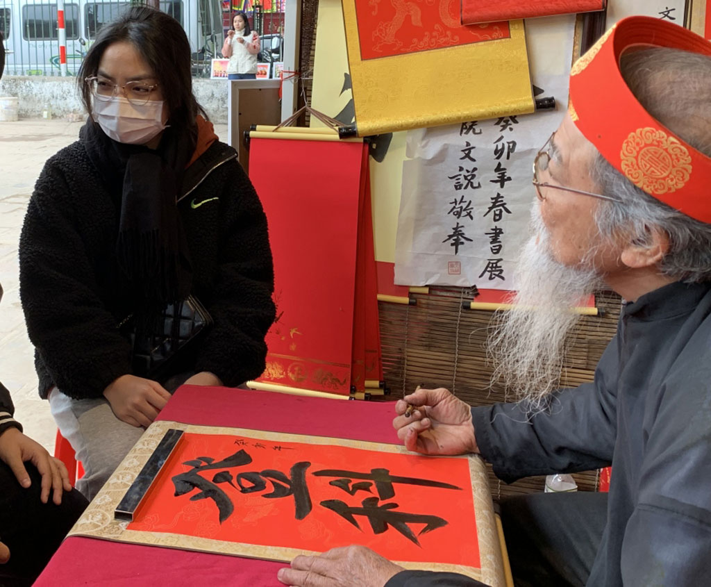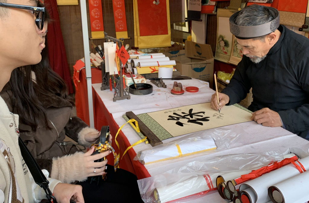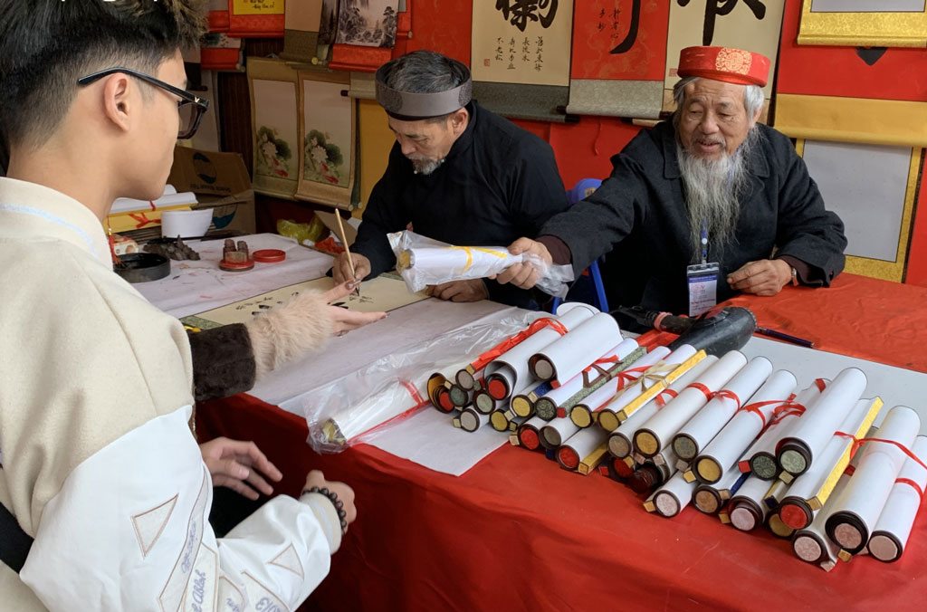 Nhiều bạn trẻ đi xin chữ đầu năm.