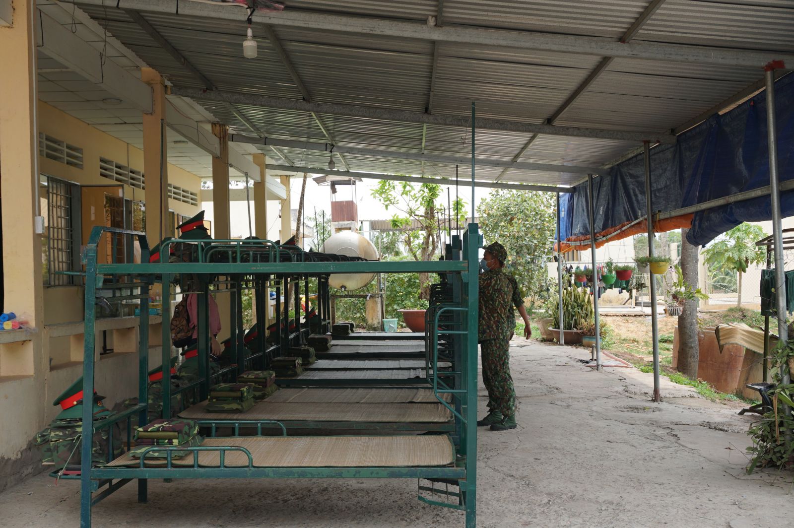Các chiến sĩ lùi về phía sau, nhường chỗ ngủ cho người cách ly