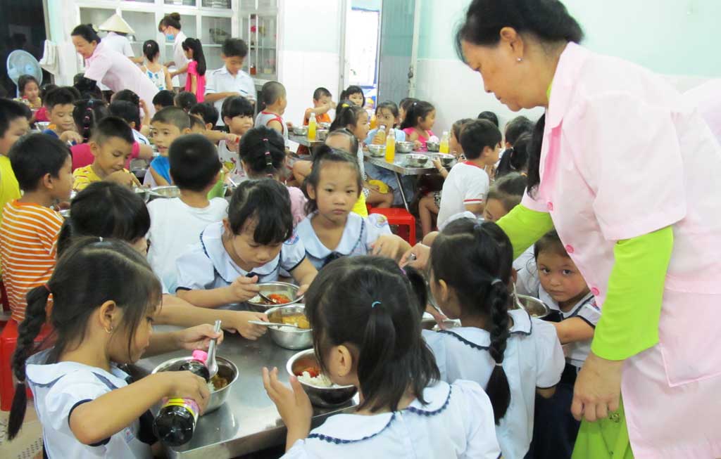 Hiệu trưởng Trường Tiểu học Mai Thị Non, thị trấn Bến Lức huyện Bến Lức, tỉnh Long An - Nguyễn Thị Cầm thông tin, Vì số lượng học sinh rất đông, các cháu còn nhỏ tuổi, sức đề kháng yếu nên Ban Giám hiệu trường luôn đặt vấn đề ATTP lên hàng đầu. Đặc biệt, trường chú trọng thực phẩm tươi sống, tuyệt đối không sử dụng thực phẩm đông lạnh. Mỗi ngày, trường còn lưu mẫu thức ăn theo quy định để thuận lợi cho việc theo dõi và giám sát. Từ đó, liên tục nhiều năm qua, trường luôn tạo được chữ tín với phụ huynh.