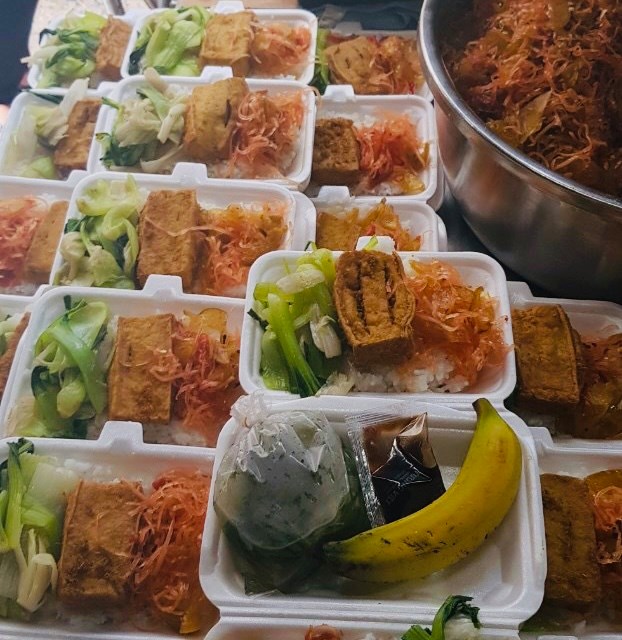 | Những suất ăn chay được gia đình anh Cường đưa vào các khu phong tỏa, khu cách ly để hỗ trợ tuyến đầu chống dịch và bà con khó khăn |