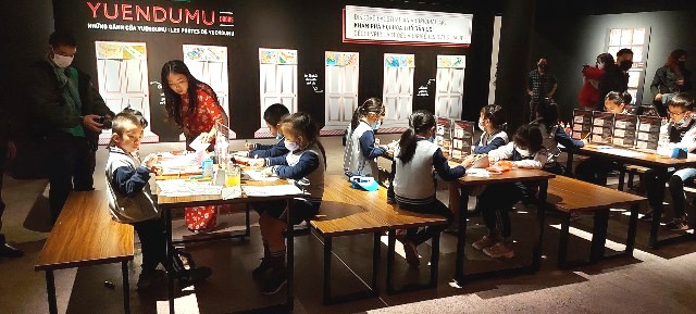 | Các em học sinh tham quan triển lãm và khám phá hội họa Úc. (Ảnh:TT) |