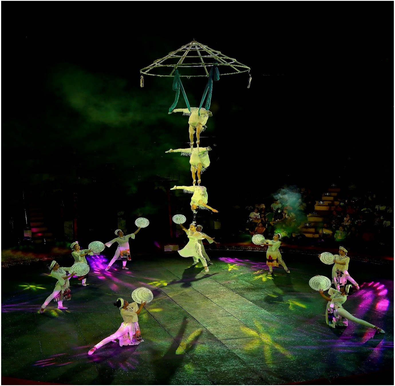 | Tiết mục đu nón của các nữ nghệ sĩ Liên đoàn Xiếc Việt Nam. |