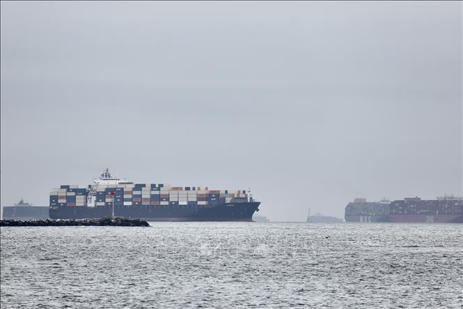 Tàu chở hàng neo tại cảng ở Los Angeles, California, Mỹ (Ảnh: THX/TTXVN)