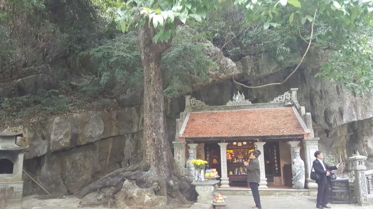Đoàn xuống bến đò Tràng An lấy thuyền nan đi dọc dòng sông Sào Khê yên bình chảy trong thung lũng giữa hai dãy núi đá hướng về Phủ Khống. Thuyền phải đi qua dăm đến bảy hang thẳm, chui qua lòng núi, thì mới tới được Phủ Khống. Đột nhiên, tướng Hiệu thay đổi tư thế, ông không ngồi thuyền ngắm cảnh như bình thường nữa, mà lặng lẽ nằm xuống thuyền, ngửa mặt ngắm trời. Trời không nắng nên ông có thể thoải mái ngắm trời mây, ngắm vòm hang động từ hướng nhìn lạ nhất. Mọi người trong đoàn đều ngạc nhiên và bật cười vì cách lựa chọn của ông. Riêng tôi thì nghĩ, đó là một hành động thể hiện tính cách khác biệt và sáng tạo của vị tướng năng động, thông thái này. Tôi cũng bắt chước ông, nằm thuyền “đi” một đoạn, và thấy thật thư giãn, cảm nhận phong cảnh thật khác lạ. Từ xa, chúng tôi đã nhìn thấy cây thị ngàn tuổi tỏa bóng mát chở che mái Phủ. Phong cảnh đẹp như một bức tranh với dòng sông nước về trong mát, với bến đò lên Phủ, và bóng cây thị xanh đậm phủ bóng êm đềm lên mái ngói âm dương trầm tích.