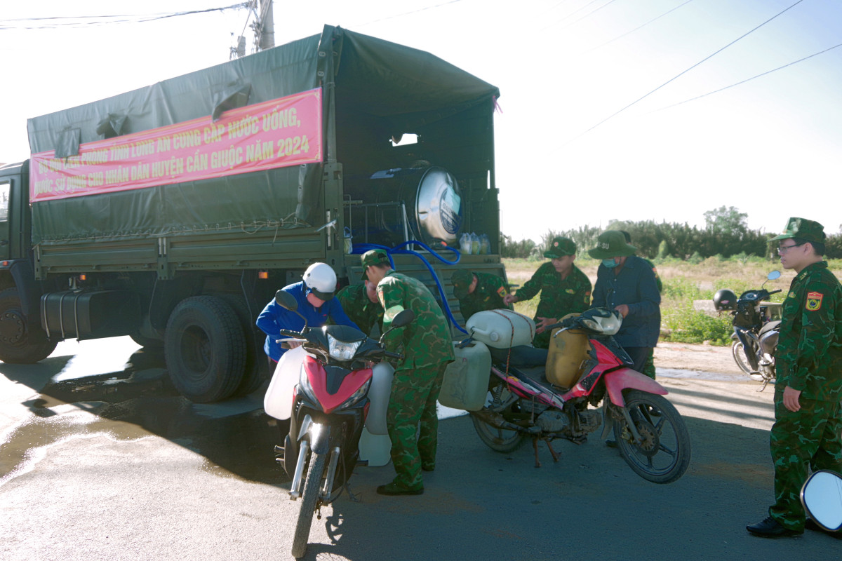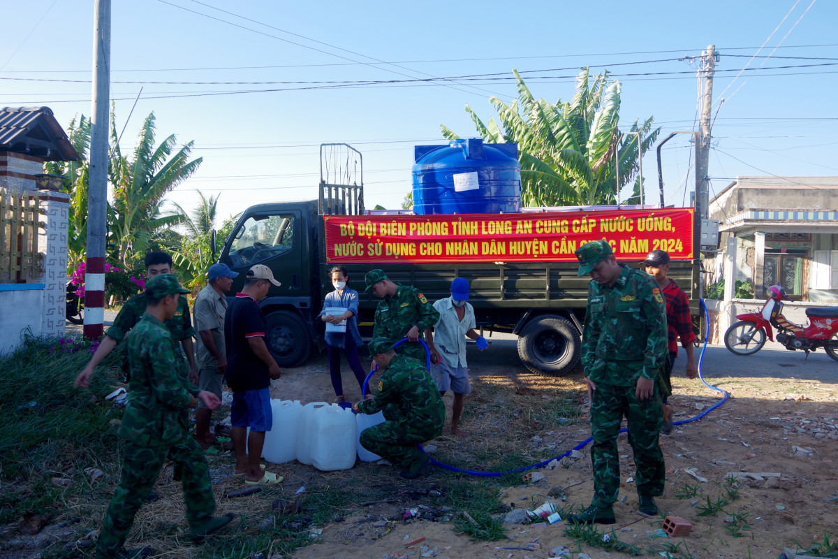 Trước đó, BĐBP tỉnh tổ chức khảo sát tình hình và nhu cầu thực tế của người dân trên địa bàn huyện Cần Giuộc và Cần Đước; đồng thời, xây dựng kế hoạch vận chuyển nước uống, nước sinh hoạt cho người dân trong mùa hạn, mặn.
