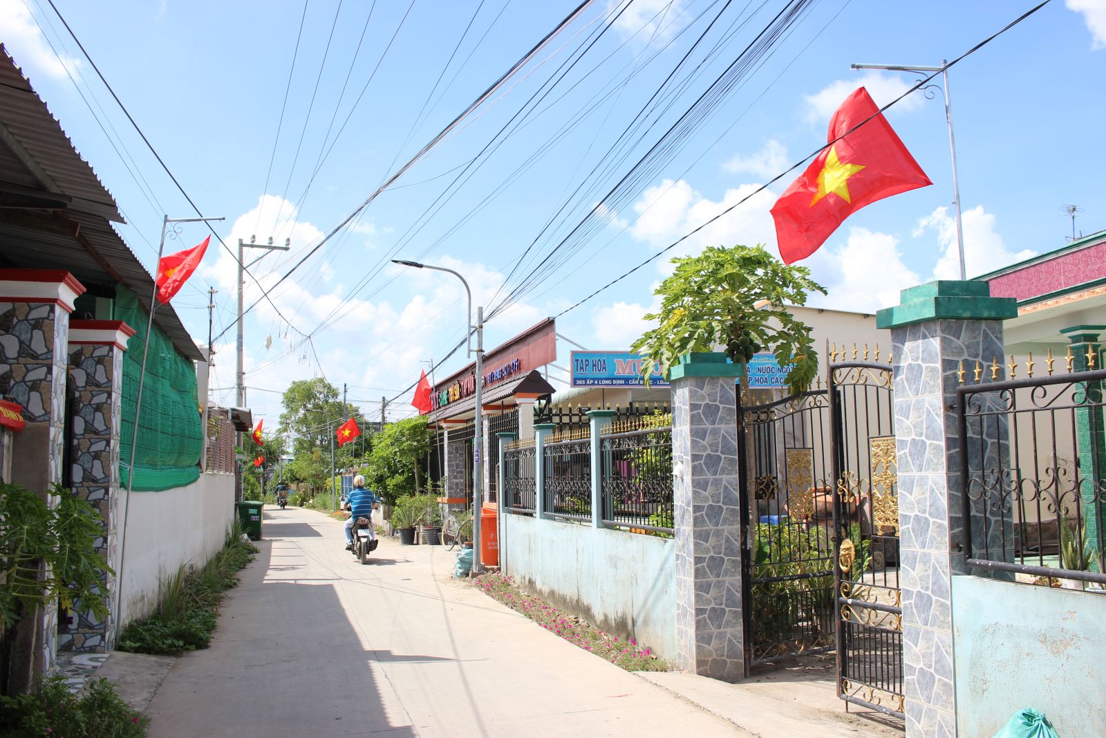 Mô hình được thực hiện trên tuyến đường liên xã Long Định - Long Cang với chiều dài trên 2,7km, lắp 200 cột cờ, kinh phí do người dân trong ấp đóng góp. Những cột cờ cắm dọc theo tuyến đường vừa được nâng cấp, mở rộng theo chuẩn nông thôn mới từ phương châm Nhà nước và nhân dân cùng làm, có hệ thống điện chiếu sáng, góp phần tô điểm diện mạo nông thôn.