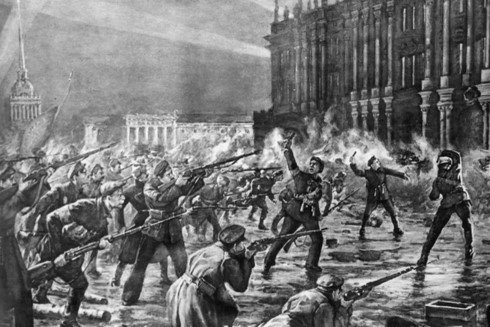 Lực lượng Cận vệ Đỏ và binh sĩ tấn công Cung điện Mùa Đông. Ảnh: Global Look Press